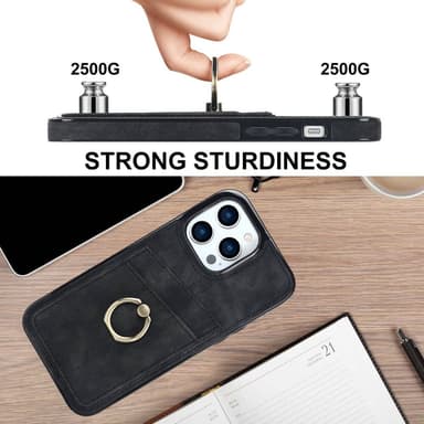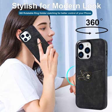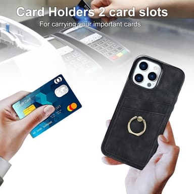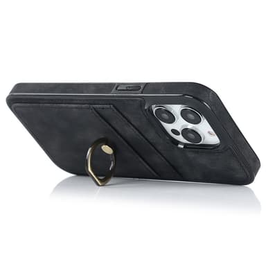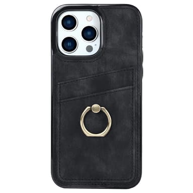 SKALO iPhone 14 Pro Max PU-Läder Korthållare Ring - Svart