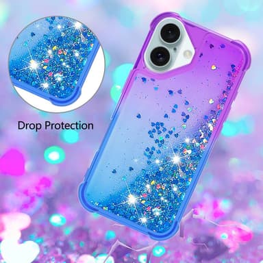Ett TPU-skal med flyttande vätska med glitter och hjärtan som skyddar bra mot stötar och tappskador.