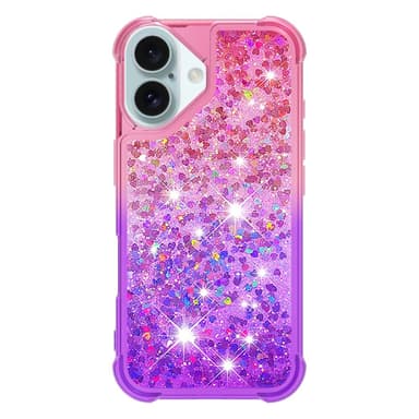 SKALO iPhone 16 Plus Kvicksand Glitter Hjärtan TPU-skal - Rosa-Lila