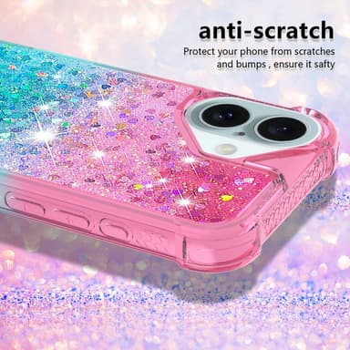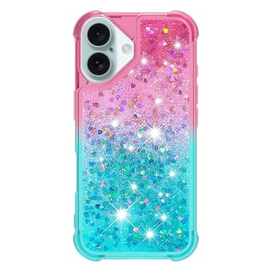 Ett TPU-skal med flyttande vätska med glitter och hjärtan som skyddar bra mot stötar och tappskador.