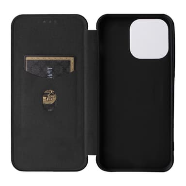 Plånboksfodral med kolfiber utseende och extra mjukt tyg på insidan.