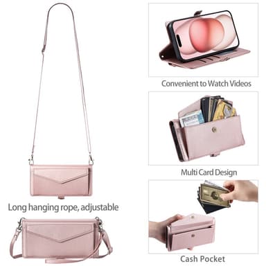 Ett plånboksfodral som går att använda som en liten handväska med lång eller kort rem. Fodral i PU läder i modern design med totalt 5 fack.