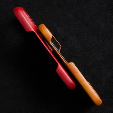 Ett skal i PU-läder med två stycken kortfack på baksidan.
