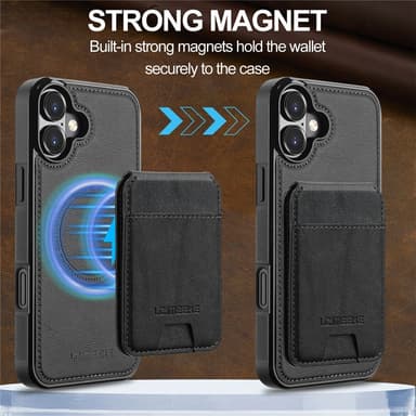 LC.IMEEKE L3 är ett smart 2-i-1 mobilfodral med avtagbar plånbok som fästs magnetiskt för enkel användning. Det är kompatibelt med MagSafe och stödjer trådlös laddning utan att du behöver ta bort fodralet. Med stötskyddande kanter skyddas din telefon mot fall, stötar, damm och repor. Tillverkat av slitstark TPU och elegant PU-läder kombinerar det stil med funktion. Det inbyggda stället gör det enkelt att titta på film eller ha videosamtal handsfree. Plånboken har RFID-skydd för att förhindra obehörig skanning av kort och rymmer upp till tre kort utan att bli klumpig.