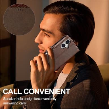 Detta eleganta fodral är tillverkat av PU-läder med kalvliknande textur och TPU-material, vilket ger en mjuk känsla och ett stilrent utseende. Det erbjuder 360-graders skydd för din telefon och kombinerar funktionalitet med design. Med två kortfack, ett fotofack och ett kontantfack kan du lämna plånboken hemma. Det vikbara stället gör det enkelt att titta på innehåll handsfree, medan det starka magnetlåset håller allt säkert på plats. Ett reserverat hål för högtalaren gör att du kan prata i telefon även med fodralet stängt.
