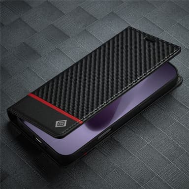 Upptäck den perfekta kombinationen av stil och funktion med detta eleganta skal i kolfiberlook. Tillverkat av slitstarkt PU-läder och TPU, ger det optimalt skydd för din telefon. Den smarta korthållaren och det inbyggda stället gör vardagen enklare.