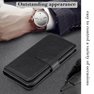KT 10-FACK ger optimalt skydd och funktionalitet. Fodralet är designat med fokus på praktisk korthållning och skydd. Med 10 kortplatser och en separat sedelficka kan du enkelt organisera dina viktigaste kort och kontanter. Den justerbara stativfunktionen förenklar både arbete och fritid. Fodralet är tillverkat av slitstarkt PU-läder och ett tunt TPU-innerskal, som ger god stötdämpning. Den dubbelsidiga magnetiska stängningen säkerställer enkel och säker förvaring.