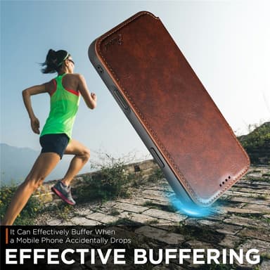 SUTENI J05 PU-Läder är ett elegant och hållbart mobilfodral tillverkat av strukturerat PU-läder och TPU, vilket ger ett stilrent skydd mot vardagligt slitage. Den magnetiska stängningen håller telefonen och dina tillhörigheter säkert på plats, samtidigt som den möjliggör snabb åtkomst. Med inbyggd magnetisk spole är fodralet kompatibelt med MagSafe-laddning, vilket gör det enkelt att ladda utan att ta bort fodralet. Tre kortfack och ett sedelfack gör att du kan lämna plånboken hemma. Fodralet kan även användas som ett praktiskt ställ för handsfree-visning. Den upphöjda kanten runt kameran ger extra skydd mot repor och skador.