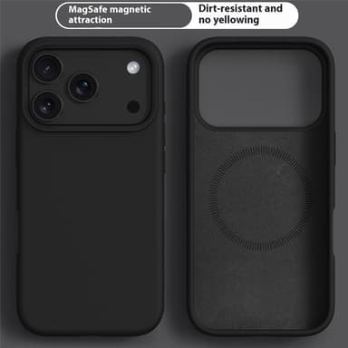 Detta tunna silikonskalet kombinerar stilren design med praktisk funktionalitet. Med inbyggda starka magneter är det helt kompatibelt med MagSafe-laddning, vilket gör trådlös laddning smidig och effektiv utan att ta bort fodralet. Det högkvalitativa, mjuka flytande silikonmaterialet ger en hudvänlig känsla och ett säkert grepp, medan det stötdämpande PC-lagret skyddar din telefon mot stötar. En mjuk fiberinredning skyddar mot repor och absorberar stötar. Fodralet är dessutom motståndskraftigt mot olja, smuts och fingeravtryck, vilket håller din telefon ren. Den stora kamerautskärningen skyddar kameran utan att störa fotografering.