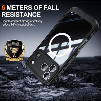 Shockproof Clear Hybrid+Skärmskydd är ett genomskinligt mobilskal som kombinerar stilren design med avancerat skydd. Tillverkat av en slitstark PC-baksida och en flexibel TPU-ram, ger det ett robust skydd mot stötar och repor. Den heltäckande designen omsluter telefonen utan glipor och bevarar dess eleganta form. Det transparenta materialet låter telefonens ursprungliga design synas, samtidigt som det skyddar effektivt. Det inbyggda skärmskyddet i härdat glas skyddar skärmen mot repor och bibehåller både klarhet och känslighet. Förhöjda kanter runt kamera och skärm ger extra skydd vid fall. Det inbyggda magnetstödet gör skalet kompatibelt med MagSafe-laddning.
