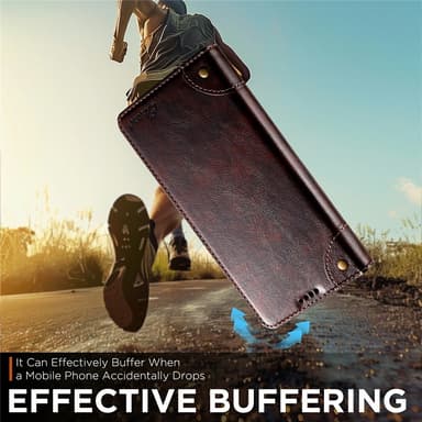 Detta eleganta mobilfodral från SUTENI är tillverkat av högkvalitativt PU-läder som motstår repor och ger ett stilrent utseende. Den mjuka och slitstarka TPU-insidan skyddar din telefon effektivt mot vardagligt slitage. Med en magnetisk stängning hålls både telefon och kort säkert på plats. Fodralet har tre kortfack och ett kontantfack, vilket gör det enkelt att lämna plånboken hemma. Dessutom kan det fällas ut till ett praktiskt stativ för handsfree-videovisning eller samtal. En upphöjd kant runt kameran skyddar mot repor, och det finns ett hål för att ta emot samtal även när fodralet är stängt.