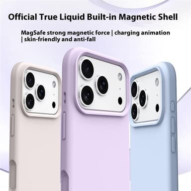 Detta tunna silikonskalet kombinerar stilren design med praktisk funktionalitet. Med inbyggda starka magneter är det helt kompatibelt med MagSafe-laddning, vilket gör trådlös laddning smidig och effektiv utan att ta bort fodralet. Det högkvalitativa, mjuka flytande silikonmaterialet ger en hudvänlig känsla och ett säkert grepp, medan det stötdämpande PC-lagret skyddar din telefon mot stötar. En mjuk fiberinredning skyddar mot repor och absorberar stötar. Fodralet är dessutom motståndskraftigt mot olja, smuts och fingeravtryck, vilket håller din telefon ren. Den stora kamerautskärningen skyddar kameran utan att störa fotografering.
