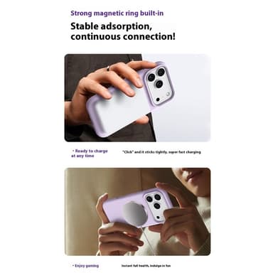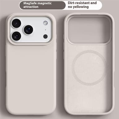 Detta tunna silikonskalet kombinerar stilren design med praktisk funktionalitet. Med inbyggda starka magneter är det helt kompatibelt med MagSafe-laddning, vilket gör trådlös laddning smidig och effektiv utan att ta bort fodralet. Det högkvalitativa, mjuka flytande silikonmaterialet ger en hudvänlig känsla och ett säkert grepp, medan det stötdämpande PC-lagret skyddar din telefon mot stötar. En mjuk fiberinredning skyddar mot repor och absorberar stötar. Fodralet är dessutom motståndskraftigt mot olja, smuts och fingeravtryck, vilket håller din telefon ren. Den stora kamerautskärningen skyddar kameran utan att störa fotografering.