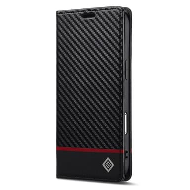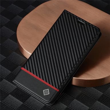 Upptäck den perfekta kombinationen av stil och funktion med detta eleganta skal i kolfiberlook. Tillverkat av slitstarkt PU-läder och TPU, ger det optimalt skydd för din telefon. Den smarta korthållaren och det inbyggda stället gör vardagen enklare.