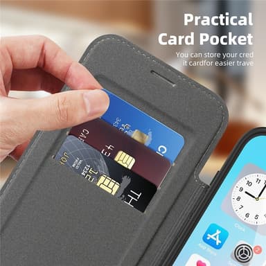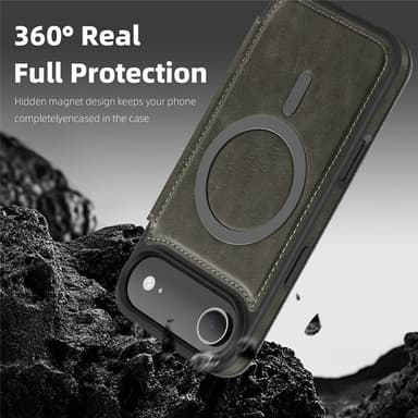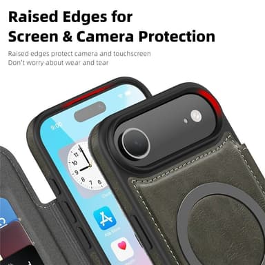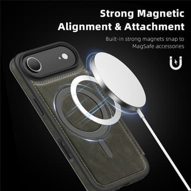 Detta eleganta skal erbjuder suveränt skydd med inbyggda magneter. Smidig MagSafe-kompatibilitet ger snabb trådlös laddning varje gång. Skalet är tillverkat av hållbar TPU och stilfullt PU-läder. Praktiska kortplatser rymmer enkelt ditt ID eller kreditkort. RFID-blockeringsteknik skyddar din personliga information mot obehörig skanning. Förhöjda kanter skyddar skärm och kamera effektivt.