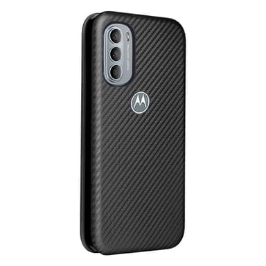 Plånboksfodral med kolfiber utseende och extra mjukt tyg på insidan.