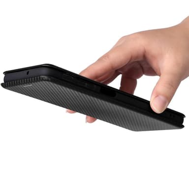 Plånboksfodral med kolfiber utseende och extra mjukt tyg på insidan.