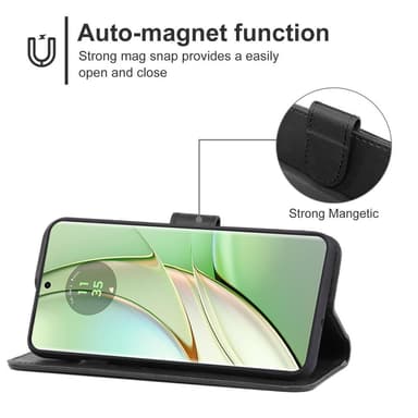 Plånboksfodral i premium PU-läder med totalt 4 stycken fack.