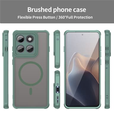 Matt Hybrid-skalet ger optimalt skydd och funktionalitet. Den robusta designen, tillverkad av högkvalitativa PC + TPU-material, ger ett bekvämt grepp. Den magnetiska baksidan möjliggör smidig anslutning till magnetiska tillbehör. De precisa utskärningarna säkerställer full funktionalitet.