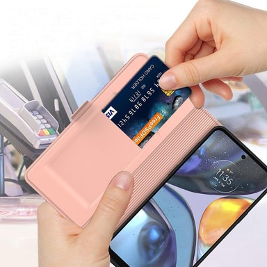 Detta mobilfodral kombinerar elegant design med praktisk funktionalitet. Tillverkat av silkesstruktur PU-läder och TPU, erbjuder det en lyxig känsla och pålitligt skydd mot repor, stötar och vardagligt slitage. Ett inbyggt kortfack gör det enkelt att förvara viktiga kort som ID eller kreditkort. Fodralet kan vikas till ett ställ med justerbara vinklar, perfekt för att läsa, titta på videor eller surfa. Den starka magnetstängningen håller fodralet säkert stängt och skyddar både skärm och innehåll. En smart frontöppning gör det möjligt att ta emot samtal utan att öppna fodralet.