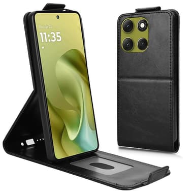 Upplev den perfekta kombinationen av skydd och stil med detta vertikala flip-fodral i PU-läder. Den smarta designen öppnas nedåt, så att du enkelt kan hantera din telefon med en hand. Fodralet är tillverkat av hållbart TPU och elegant PU-läder, och det har en inbyggd kortplats för ditt viktigaste kort. Den starka magnetiska stängningen ger extra skydd och enkel användning. Med en mjuk finish och precisa utskärningar ligger fodralet bekvämt i handen och ger full åtkomst till alla knappar och portar. Skydda din telefon mot stötar och repor med detta stilfulla och funktionella fodral.