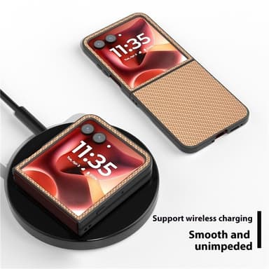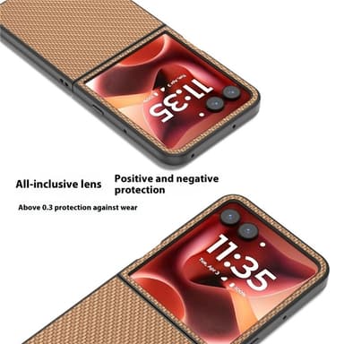 Detta eleganta fodral är tillverkat av högkvalitativt PU-läder och PC-material, vilket ger ett slitstarkt skydd som håller länge. Den stilrena kolfibertexturen ger din enhet ett sofistikerat utseende och lyfter dess design. Den flexibla vikbara konstruktionen bevarar telefonens fulla funktionalitet samtidigt som den skyddar effektivt. Baksidan skyddas helt mot repor, stötar och andra skador. Enkel att installera och ta bort vid behov.