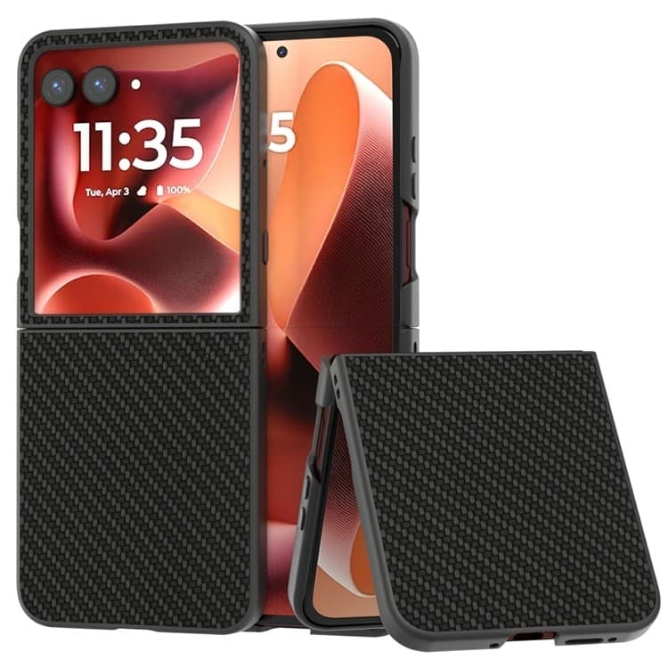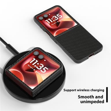Detta eleganta fodral är tillverkat av högkvalitativt PU-läder och PC-material, vilket ger ett slitstarkt skydd som håller länge. Den stilrena kolfibertexturen ger din enhet ett sofistikerat utseende och lyfter dess design. Den flexibla vikbara konstruktionen bevarar telefonens fulla funktionalitet samtidigt som den skyddar effektivt. Baksidan skyddas helt mot repor, stötar och andra skador. Enkel att installera och ta bort vid behov.