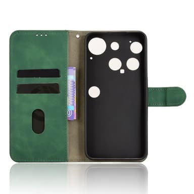 Detta fodral är tillverkat av TPU och PU-läder och erbjuder en lyxig känsla mot huden samtidigt som det ger hållbarhet och skydd. Med två inbyggda kortfack och en kontantficka blir det enkelt att organisera dina kort och kontanter när du är på språng. Det justerbara stödet möjliggör handsfree-användning, perfekt för att titta på videor eller videosamtal. Den magnetiska stängningen ger extra säkerhet för dina värdesaker. Fodralet skyddar din enhet mot repor, stötar och fall, och har ett handledsband för enkel transport samt ett främre utskärningshål för samtal med fodralet stängt.