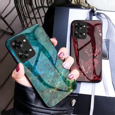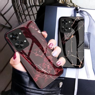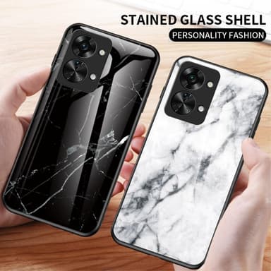 Ett slimmat TPU-skal med stilrent tryck och baksida i härdat glas för maximal känsla.