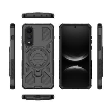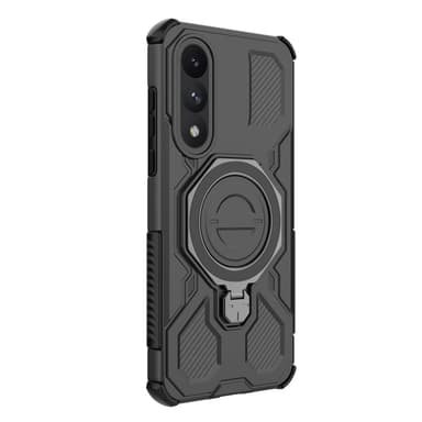 Detta mobilskal kombinerar slitstark konstruktion med lätt vikt tack vare materialvalet av hård PC och mjuk TPU. Den integrerade 360° roterbara metallstativet gör det enkelt att justera telefonens vinkel för optimal användning. Med stöd för magnetisk anslutning är skalet kompatibelt med MagSafe och andra magnetiska tillbehör, vilket ger ökad flexibilitet. Den robusta designen ger effektivt skydd mot fallskador, samtidigt som installationen är enkel och verktygsfri.