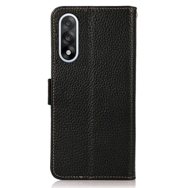 Detta eleganta fodral är tillverkat av äkta koläder med litchistruktur, vilket ger en sofistikerad och stilren känsla till din telefon. Den slimmade designen i TPU-material gör fodralet lätt att bära och enkelt att montera eller ta bort, utan att kompromissa med passformen. Med inbyggt RFID-skydd skyddas din personliga information från obehörig skanning. Fodralet har praktiska kort- och kontantfack samt kan omvandlas till ett stativ för handsfree-visning. Den vikbara folio-designen med dubbla magnetflikar ger ett komplett skydd mot repor och stötar.