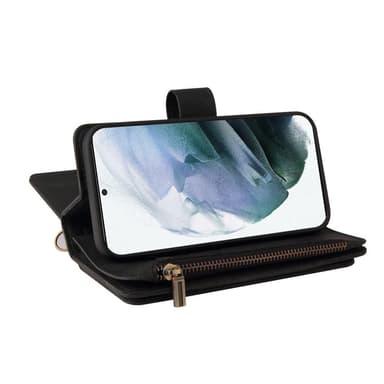 Ett plånboksfodral med mocka-liknande PU-läder med totalt 17 fack.