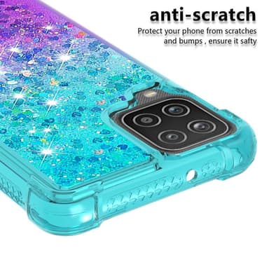 Ett TPU-skal med flyttande vätska med glitter och hjärtan som skyddar bra mot stötar och tappskador.