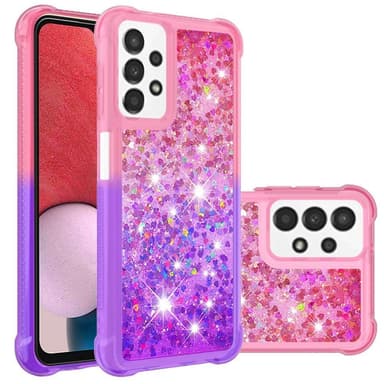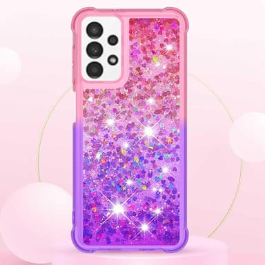 Ett TPU-skal med flyttande vätska med glitter och hjärtan som skyddar bra mot stötar och tappskador.