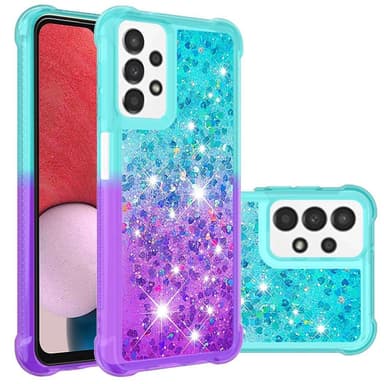 Ett TPU-skal med flyttande vätska med glitter och hjärtan som skyddar bra mot stötar och tappskador.