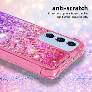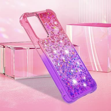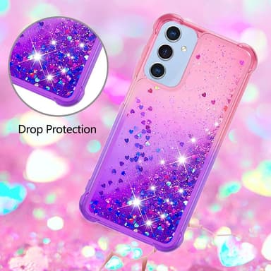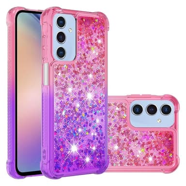 Ett TPU-skal med flyttande vätska med glitter och hjärtan som skyddar bra mot stötar och tappskador.