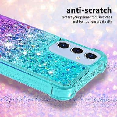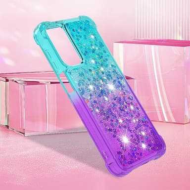 Ett TPU-skal med flyttande vätska med glitter och hjärtan som skyddar bra mot stötar och tappskador.