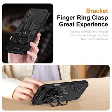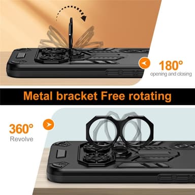 Armor Metallring är ett slitstarkt mobilskal tillverkat av en hybrid av TPU och PC, förstärkt med ett metallstativ. Kombinationen av flexibilitet och styrka ger ett pålitligt skydd för daglig användning. Upphöjda kanter på 0,5 mm runt skärmen och kameran skyddar effektivt mot repor. Det integrerade metallstativet kan öppnas 180 grader och roteras 360 grader, vilket ger flera visningsvinklar för videosamtal, spel eller streaming. Den stötdämpande TPU-ramen och den robusta PC-baksidan skyddar mot stötar, fall och repor. Exakta utskärningar ger enkel åtkomst till alla knappar, portar och funktioner utan att ta bort skalet.