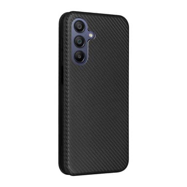 Upplev perfekt skydd och elegans med detta skal i kolfiberlook. Det har en behaglig känsla och skyddar effektivt din telefon mot dagligt slitage. Den smarta korthållaren gör det enkelt att ha dina viktigaste kort nära till hands, medan den magnetiska stängningen håller din telefon säkert stängd. Se film eller surfa på nätet med det inbyggda stället. Skalet skyddar din telefon mot repor, damm och skador.