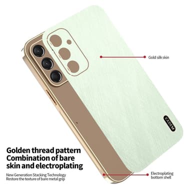 KADEM Guldkant kombinerar stil och funktion i ett elegant mobilskal. Den högkvalitativa elektropläterade ytan ger ett modernt utseende som förhöjer telefonens design. Ytan i PU-läder med silkeslen textur ger ett bekvämt grepp och en sofistikerad känsla. Det stötsäkra TPU-materialet skyddar mot vardagliga stötar och repor. Exakta utskärningar ger enkel åtkomst till alla funktioner utan att ta bort skalet. Det flexibla materialet gör det enkelt att sätta på och ta av, samtidigt som den slimmade designen inte gör telefonen klumpig.