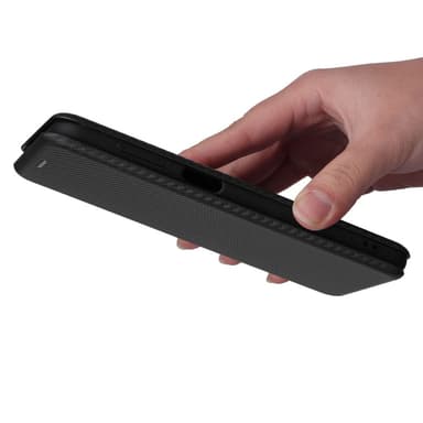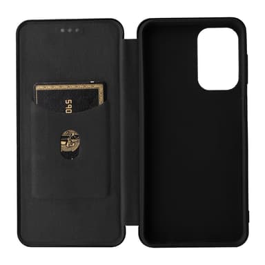Plånboksfodral med kolfiber utseende och extra mjukt tyg på insidan.