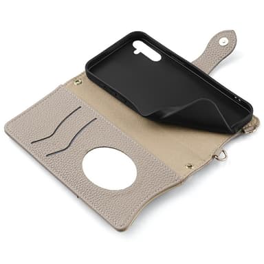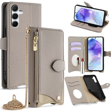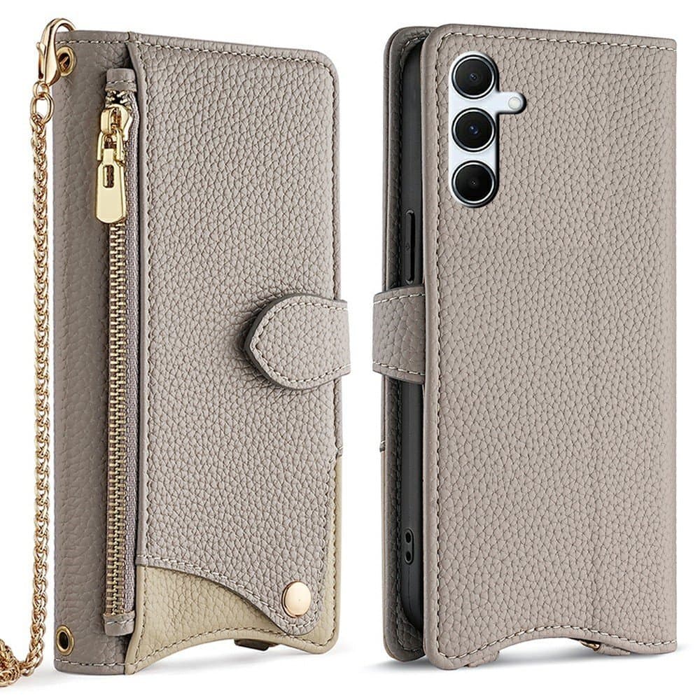 Skydda din telefon med stil med Litchi Makeup Mirror Chain. Det mjuka TPU-innerskalet och PU-lädret med litchi-textur skyddar mot stötar och repor, medan den oregelbundna fiskstjärtdesignen ger ett elegant utseende. Med inbyggda kortplatser, sminkespegel, kontantfack och blixtlåsficka har du allt du behöver nära till hands. Den magnetiska stängningen håller dina saker säkra, och fodralet fungerar även som ett ställ. Den medföljande 1,2 m långa metallkedjan gör det enkelt att bära din telefon.