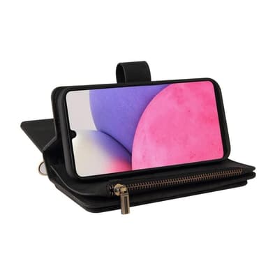 Ett plånboksfodral med mocka-liknande PU-läder med totalt 17 fack.
