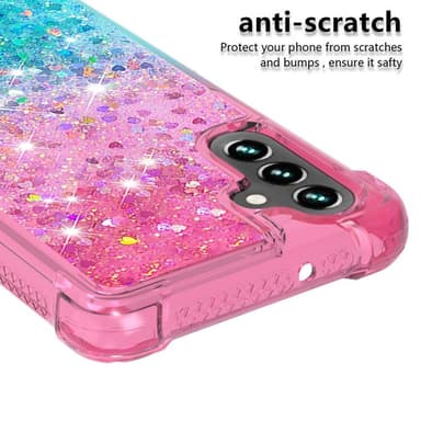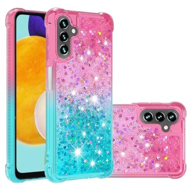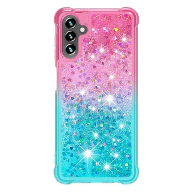 Ett TPU-skal med flyttande vätska med glitter och hjärtan som skyddar bra mot stötar och tappskador.