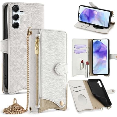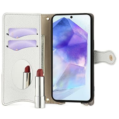 Skydda din telefon med stil med Litchi Makeup Mirror Chain. Det mjuka TPU-innerskalet och PU-lädret med litchi-textur skyddar mot stötar och repor, medan den oregelbundna fiskstjärtdesignen ger ett elegant utseende. Med inbyggda kortplatser, sminkespegel, kontantfack och blixtlåsficka har du allt du behöver nära till hands. Den magnetiska stängningen håller dina saker säkra, och fodralet fungerar även som ett ställ. Den medföljande 1,2 m långa metallkedjan gör det enkelt att bära din telefon.
