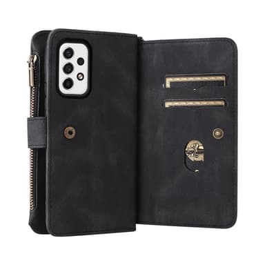 Ett plånboksfodral med mocka-liknande PU-läder med totalt 17 fack.