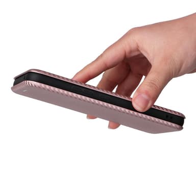 Plånboksfodral med kolfiber utseende och extra mjukt tyg på insidan.