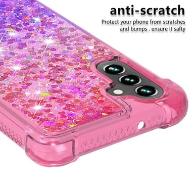Ett TPU-skal med flyttande vätska med glitter och hjärtan som skyddar bra mot stötar och tappskador.