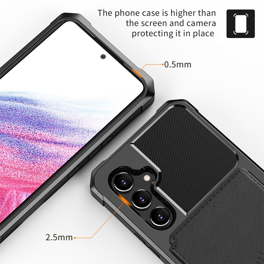 Ett stöttåligt skal i TPU med snyggt utseende samt en mindre plånbok monterad på baksidan av skalet med totalt 4-fack.