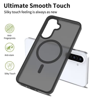 Upplev den silkeslena känslan av Skin-touch Hybrid. Den flexibla TPU-ramen skyddar din telefon mot stötar och repor, medan den slimmade profilen bevarar telefonens eleganta design. Med inbyggda magneter för MagSafe-kompatibilitet och precisa utskärningar för enkel åtkomst till alla funktioner, är detta skal den perfekta kombinationen av stil och funktionalitet.